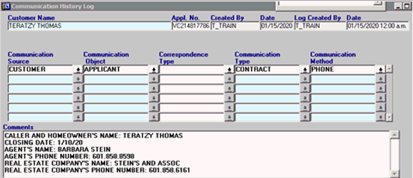 17. | From the Application Entry Form screen, select the Comm History Log icon from the top toolbar. Click on the drop-down arrow | |