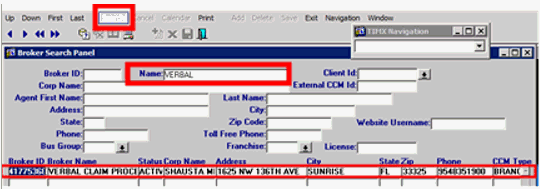 9. | Enter VERBAL in the Name field. Click on Search. The Broker Id will display. Enter. | |
