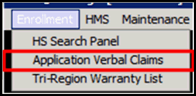 1. | From the TIMX SCM menu, select Enrollment > Application Verbal Claims. | |